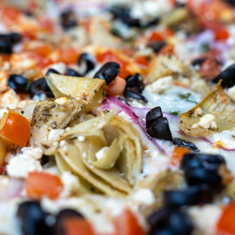 Toppings: Pepperoni | Italian Sausage | Ham | Bacon | Red Onions | Green Peppers | Grilled Artichokes | Black Olives | Green Olives | Jalapeños | Banana Peppers | Mama Lil's Sweet Hot Peppers | Seasoned Ground Beef | Mushrooms | Broccoli | Spinach | Fresh Basil | Tomatoes | Fresh Garlic | Blue Cheese Crumbles | Hot Honey Drizzle | *Grilled Steak | *Grilled Chicken | *Fried Chicken • *Count as two items